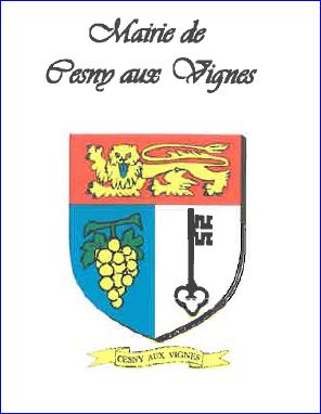 (2018) Parti: au 1er d'azur à la grappe de raisin d'or, tigée et feuillée de sinople, au 2e d'argent à la clef contournée de sable; au chef de gueules chargé d'un léopard d'or armé et lampassé d'azur.