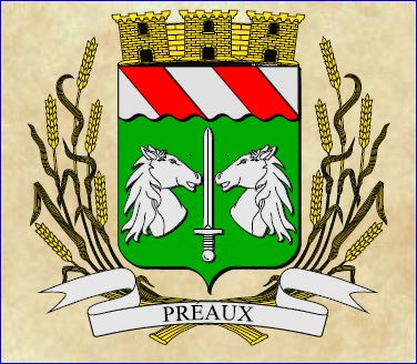 (2000) De sinople à l'épée haute d'argent accostée de deux têtes de cheval affrontées du même; au chef ondé d'argent à deux bandes de gueules.