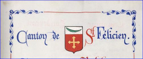 De gueules à la croix tréflée d'or; au chef d'argent chargé d'une palme contournée en fasce de sinople.