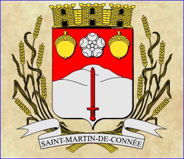 (1999) De gueules à la montagne d'argent, chargée d'une épée haute du champ et accompagné en chef d’une rose d'argent, accostée de deux glands versés d'or.
