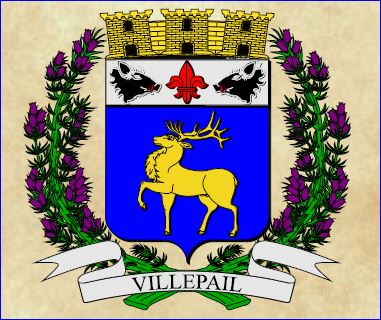 (1999) D'azur au cerf d'or; au chef d'argent, chargé d'une fleur de lis de gueules, accostée de deux hures de sanglier affrontées de sable, défendues de gueules.