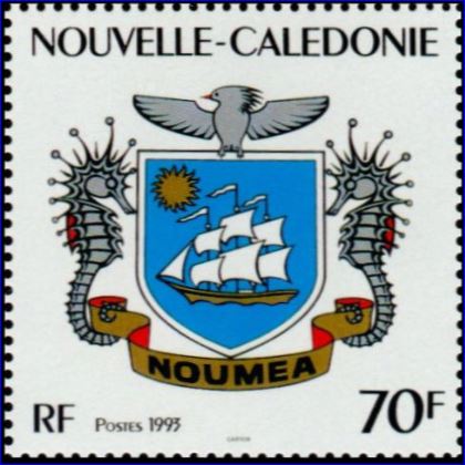 D'azur au vaisseau d'or habillé d'argent accompagné au canton dextre du chef d'un soleil non figuré d'or; à la filière d'argent.