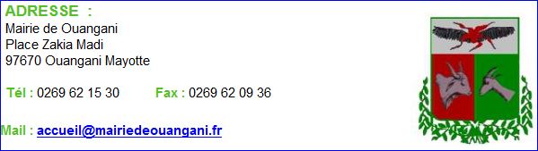Parti: au 1er de gueules à la tête de buffle contournée d'argent, au 2e de sinople à la tête de gazelle d'argent; le tout sommé d'un chef d'argent chargé d'une fleur d'ylang-ylang [Cananga odorata] de gueules brochant sur deux branches de sinople aboutées en fasce.