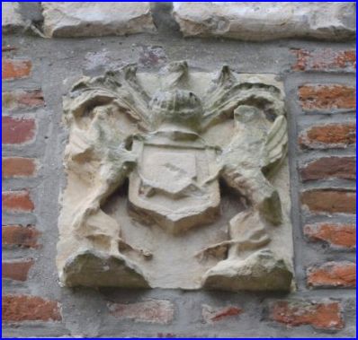 sculptées au-dessus de la porte du clocher de l'église.
