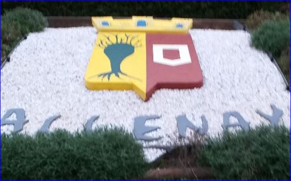 Blason sur un massif végétal de la commune.