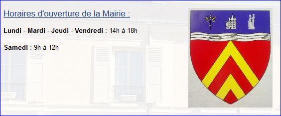 De gueules à deux chevrons d'or; au chef ondé d'azur soutenu d'une rivière d'argent et chargé du château du lieu d'argent adextré d'un bouquet de trois épis de blé tigés et feuillés d'or et senestré de la statue ornant la fontaine du lieu d'argent, représentant une femme agenouillée et un homme debout derrière elle, la main senestre sur l'épaule de la dame.