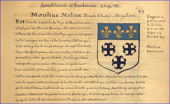 Armorial de Pierre de La Planche, 1669. La description des provinces et villes de France, extrait. Bibliothèque du Musée Condé de Chantilly.