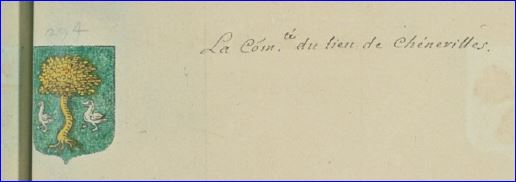 De sinople à la chaîne d'or, accostée de deux canettes d'argent.