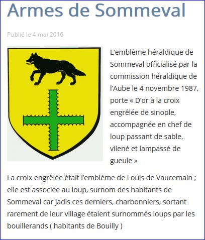 (1987) D'or au loup passant de sable, vilené et lampassé de gueules, en chef, soutenu d'une croix engrelée et alésée de sinople.