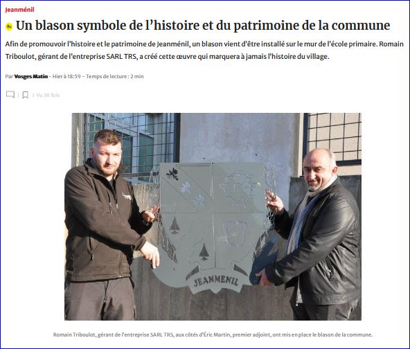 Article de presse Vosges Matin du (site du journal).Article de presse du 27 novembre 2021 (site du journal).
