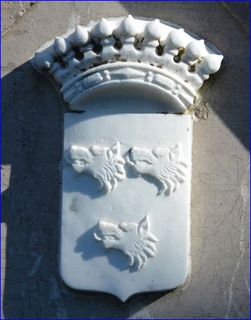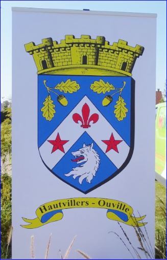 Blason sculpté sur la sépulture de la famille De Louvencourt au cimetière d'Hautvillers.