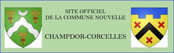 1) De sinople au chevron ondé d'argent, surmonté d'un croissant du même, accompagné de trois gerbes de blé d'or liées de gueules (CHAMPDOR).