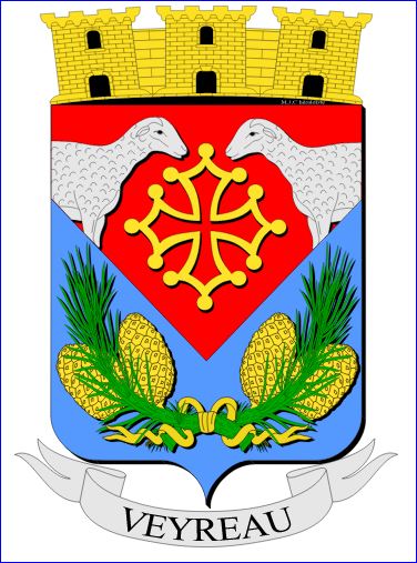 De gueules à la lettre capitale V d'or aux traits intérieurs dessinant un pied de fleur de lis, surmontée d'une croix cléchée, vidée et pommetée de douze pièces d'or.