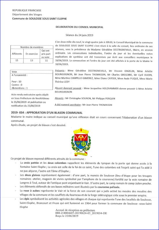 Extrait du Registre des Délibération du 24 juin 2019 (1/2).