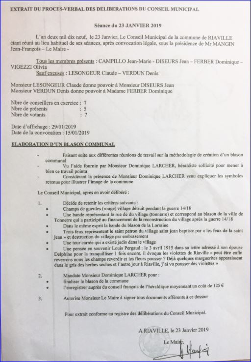 Extrait du Registre des Délibérations de 23 janvier 2019.