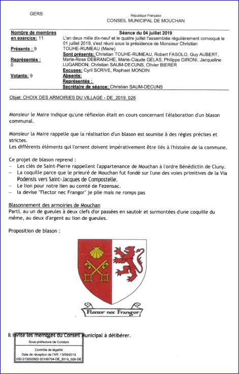 Extrait du Registre des Délibérations du 4 juillet 2019 (1/2).