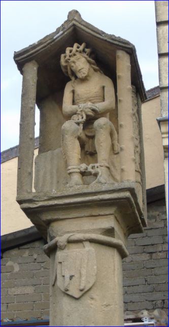 Blason sculpté sur un calvaire, place de l'abbé Jacquemin.