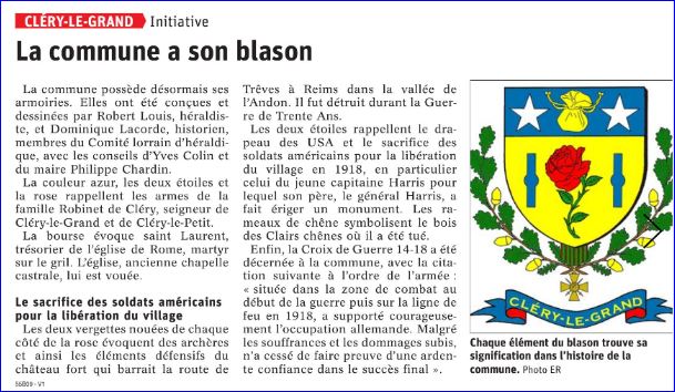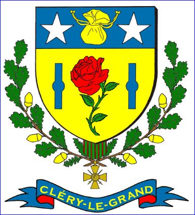 (2019) D'or à la rose des jardins de gueules tigée, feuillée et armée de sinople, accostée de deux vergettes alésées et nouées d'azur; au chef d'azur chargé d'une bourse d'or accostée de deux étoiles d'argent.