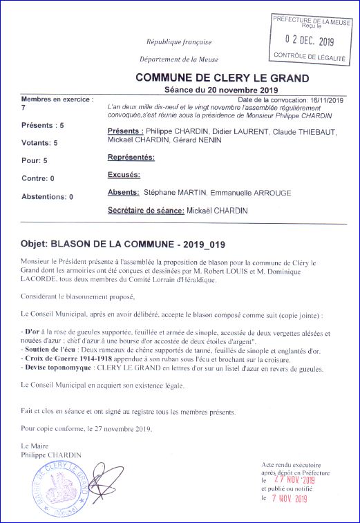 Extrait du Registre des Délibérations du 20 novembre 2019.