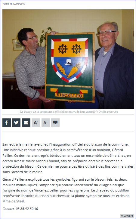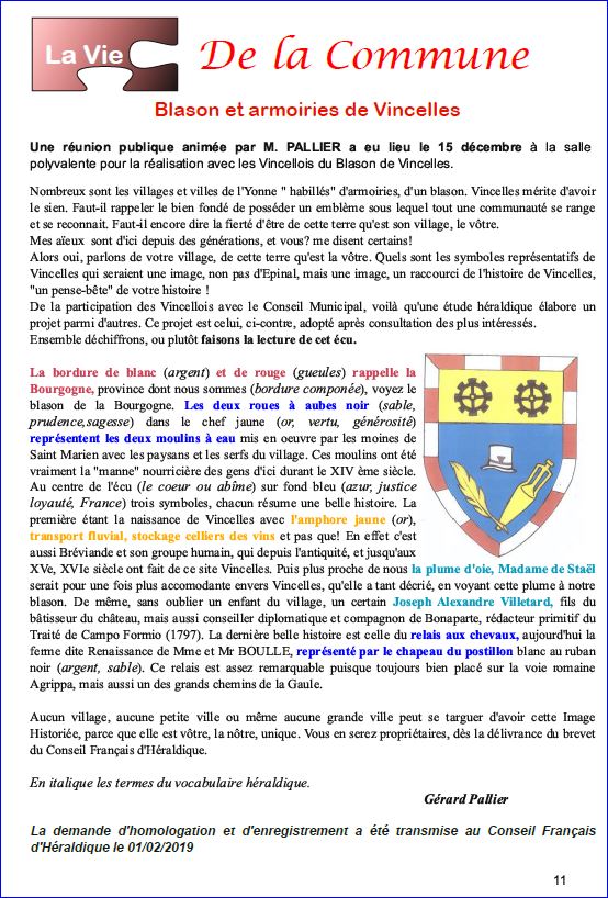 Bulletin municipal Le petit écho de VINCELLES No 72, février 2019, p. 11.