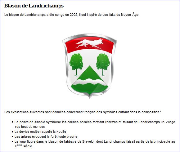 (2002) De sinople à la divise ondée d'argent; mantelé du même chargé de deux arbres de sinople; le tout sommé d'un chef de gueules chargé d'un loup courant contourné d'argent.
