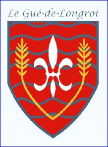 De gueules à sept filets ondés en fasce d'azur, à la fleur de lis d'argent accompagnée de deux épis de blés d'or, les tigés ployées et posés en chevron renversé, le tout brochant ; à la filière d'azur.
