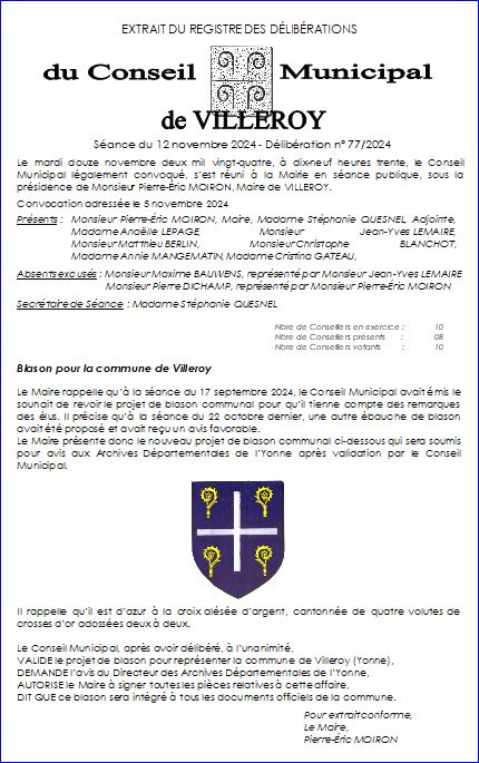 Extrait du registre des délibérations du Conseil Municipal du 12 novembre 2024.