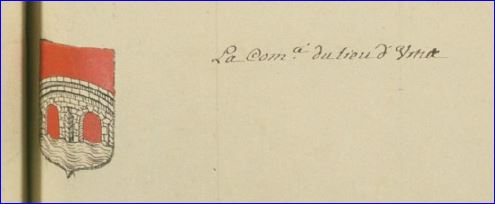 De gueules au pont à deux arches d'argent sur une rivière du même mouvant de la pointe.