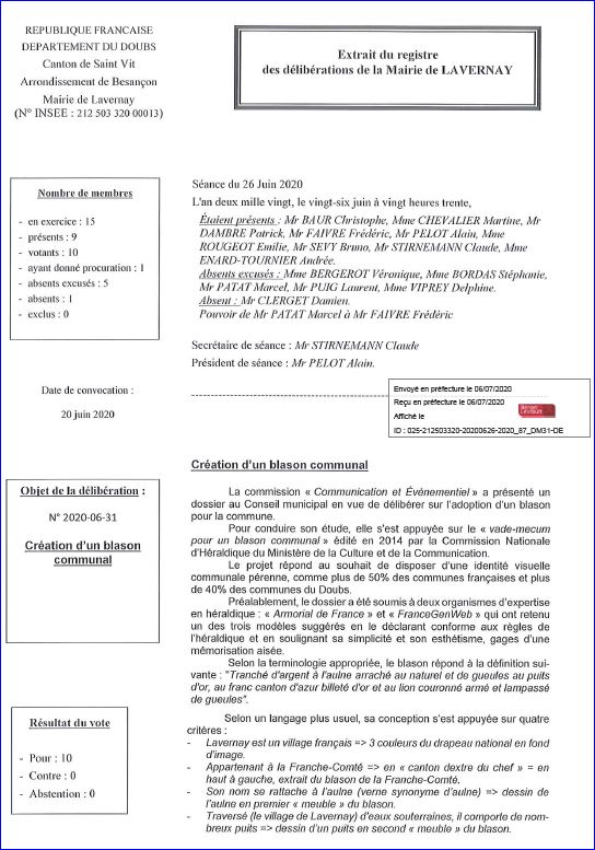 Extrait du Registre des Délibérations du Conseil Municipal du 26 juin 2020 (1/2).