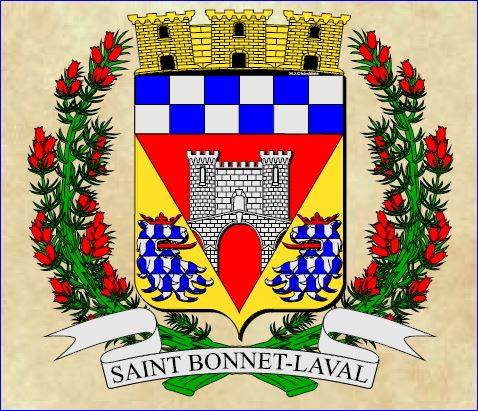 De gueules au pont de trois arches, sommé d'un château de deux tours, le tout d'argent maçonné de sable; chaussé d'or chargé de deux têtes de lions affrontées de vair, couronnées et lampassées de gueules ; le tout sommé d'un chef échiqueté d'azur et d'argent de deux tires.