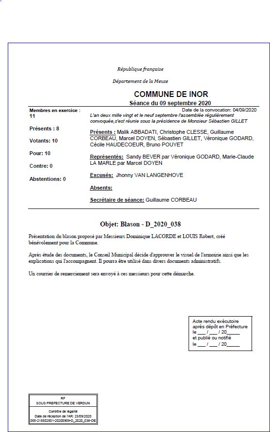 Extrait du Registre des Délibérations du 9 septembre 2020.