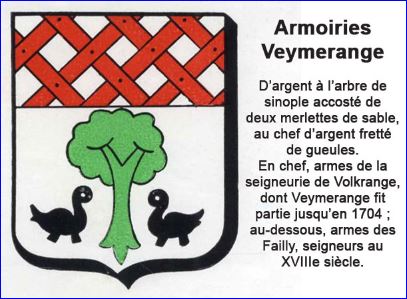 D'argent à l'arbre de sinople accosté de deux merlettes affrontées de sable; au chef d'argent fretté de gueules.
