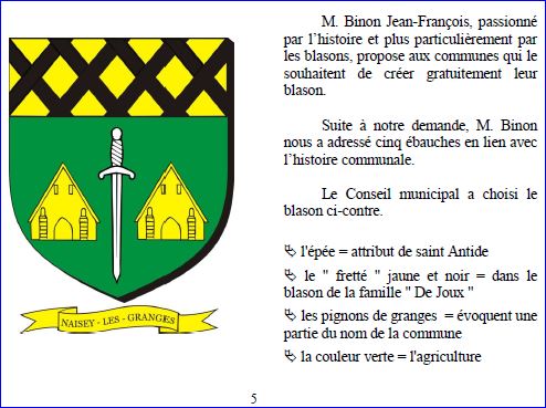 (2019) De sinople à l'épée basse d'argent, accostée de deux pignons de grange d'or; au chef d'or fretté de sable.