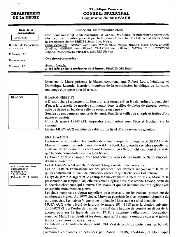Extrait du Registre des Délibérations du 6 novembre 2020 (1/2).