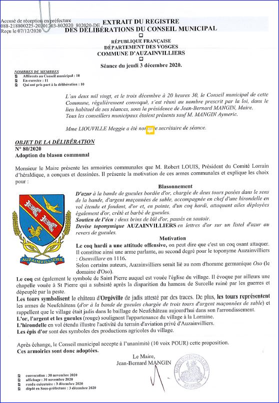 Extrait du Registre des Délibérations du 3 décembre 2020.