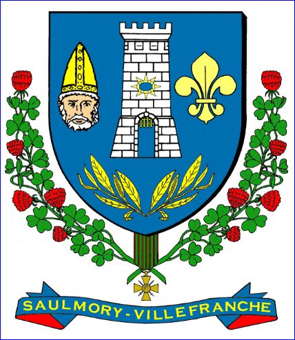 (2020) D'azur à la tour d'argent à quatre créneaux, maçonnée de sable, ouverte du champ, percée d'un œil-de-bœuf radié de huit pièces d'or, maçonné de sable et ajouré du champ, la tour hersée d'or, adextrée de la tête de saint Denis de carnation, barbée et chevelée d'argent, coiffée d'une mitre antique d'or, senestrée d'une fleur de lis du même et accompagnée en pointe de deux brins de saule d'or, appointés en chevron renversé.