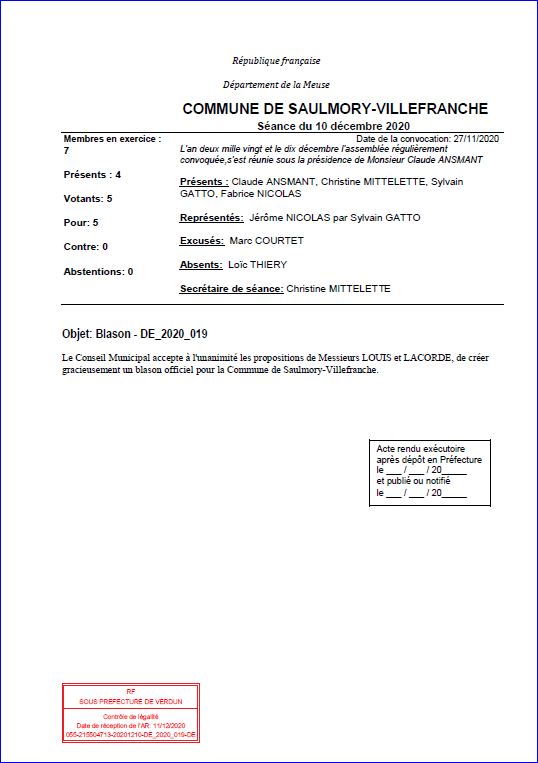 Extrait du Registre des Délibérations du 10 décembre 2020.