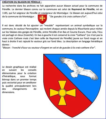 (2020) Tranché: au 1er d'azur au percnoptère [vautour] en vol et contourné d'argent, au 2e de gueules à la croix cathare d'or.