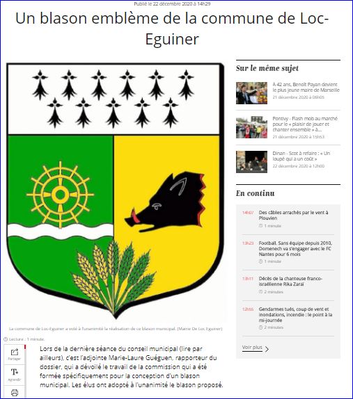 Article de presse Le Télégramme du 22 décembre 2020 (1/2) (site du journal).
