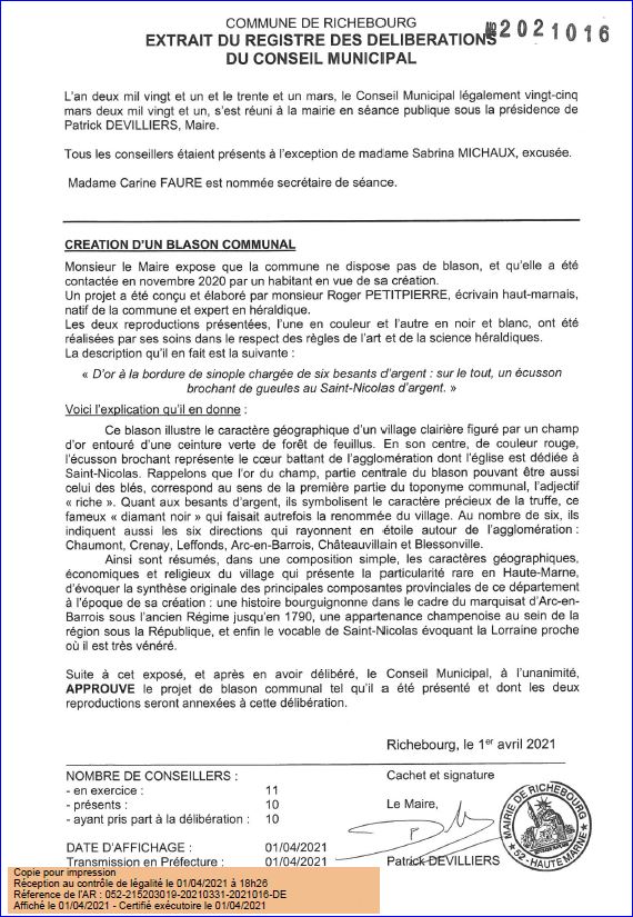 Extrait du Registre des Délibérations du 25 mars 2021.