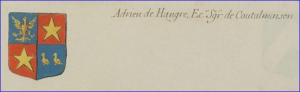 Armes d'Adrien de Hangre, écuyer, seigneur de Contalmaison.