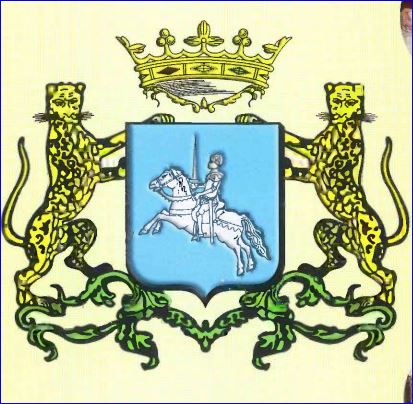 D'azur à un chevalier brandissant une épée, monté sur un cheval galopant, le tout d'argent.