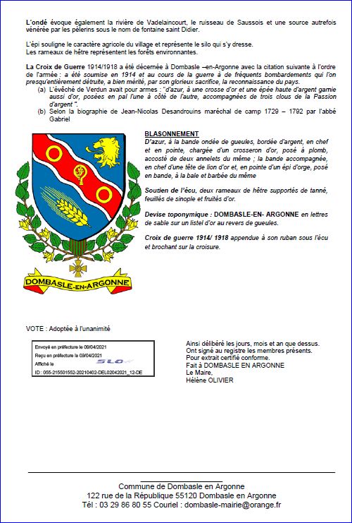 Extrait du Registre des Délibérations du 2 avril 2021 (1/2).