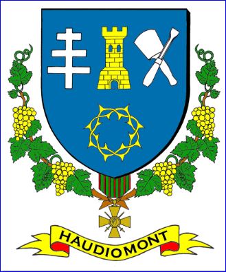(2021) D'azur à la tour d'or, en chef, maçonnée de sable, ouverte et ajourée du champ, adextrée d'une croix papale d'argent et senestrée d'une maillet de sculpteur d'argent passé en sautoir avec une gouge du même, à la couronne d'épines d'or en pointe.