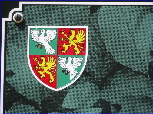 Écartelé: aux 1er et 4e de sinople à la colombe essorante d'argent becquée et membrée de gueules, au 2e et 3e de gueules au griffon couronné d'or.