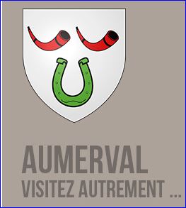 D'argent au fer à cheval renversé de sinople, percé du champ, surmonté de deux huchets de gueules, pavillonnés et enguichés de sable, les pavillons à dextre.