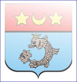 D'azur au dauphin d'argent couronné d'or; au chef cousu de gueules chargé d'un croissant d'or accosté de deux étoiles du même.
