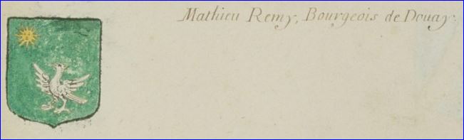 Armes de la famille Remy, pour Mathieu Remy, bourgeois de Douai.
