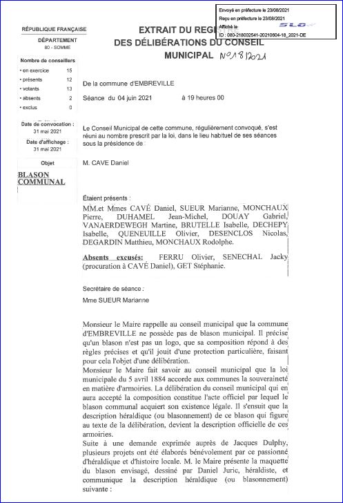 Extrait du Registre des Délibérations du 4 juin 2021 (1/3).