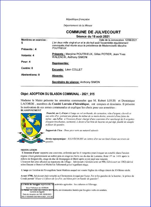 Extrait du Registre des Délibérations du 18 août 2021 (1/2).